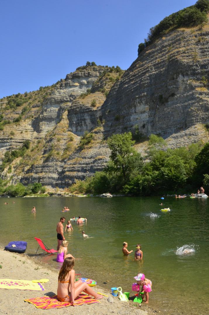 Vous cherchez un camping à Antraïgues-sur-Volane ? Le village perché dans les montagnes ardéchoises n’en accueille pas, mais à 40 km, moins d’une heure de route, La Grand’Terre, Camping 4 étoiles à Ruoms, vous accueille dans un cadre verdoyant en bord de rivière. Location de mobil-homes tout équipés, emplacements de camping spacieux, piscine chauffée, plage privée sur la rivière Ardèche, restaurant, animations pour les familles : tout est réuni pour des vacances confortables et un séjour réussi en plein cœur de l’Ardèche.
