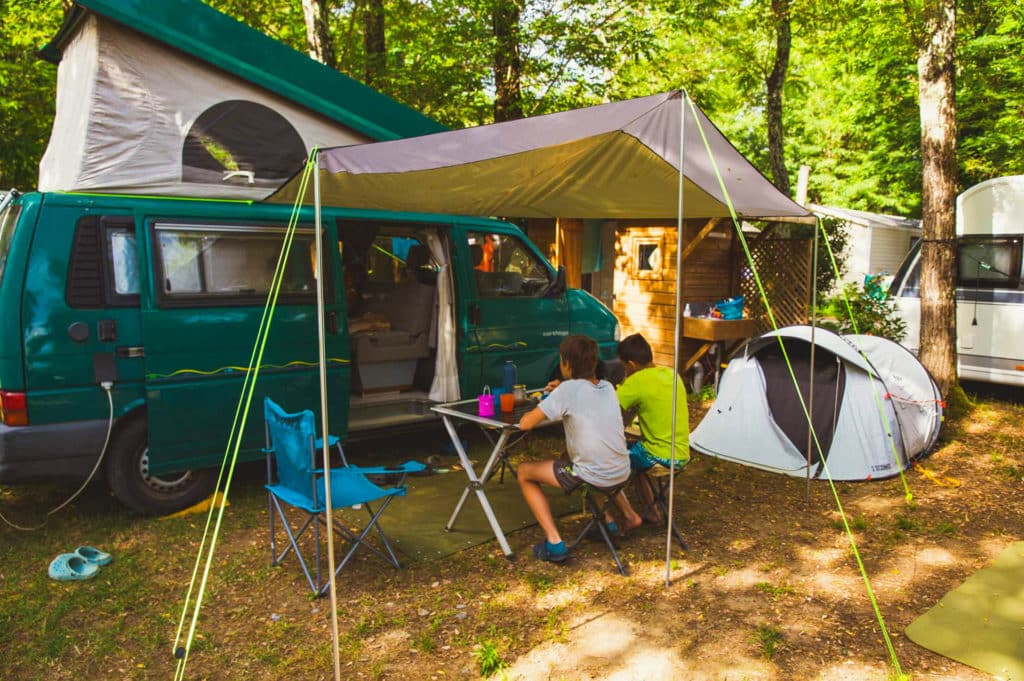Au camping La Grand’Terre, on a pensé à tous les profils de vacanciers. Tente, caravane ou mobil-home — chacun trouve son confort à deux pas de la rivière.